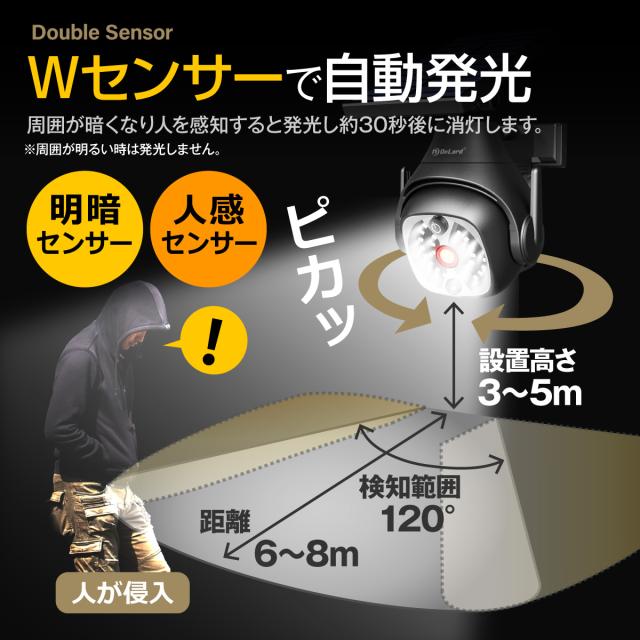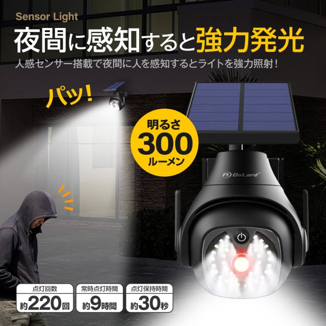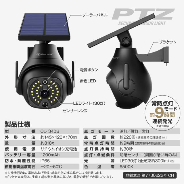 ※防犯 強盗 災害対策※ ソーラー充電式 PTZ型防犯センサーライト 光秀 LEDライト 人感センサー 自動発光 配線不要 屋外 OL-340B