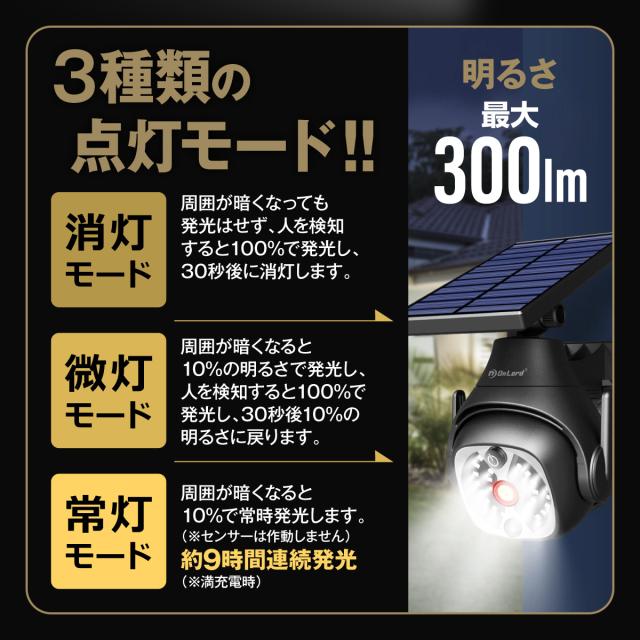 ★昼間はソーラーパネルで太陽光を効率的に充電!夜間は人感センサーで自動発光!