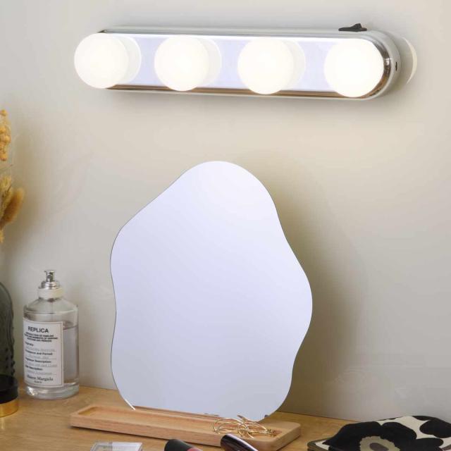 スタイリッシュなデザインの吸盤つきLEDライトです。自宅のミラーに取り付ければ、簡単にハリウッドミラーに変えられます。光の色温度は4000ケルビンで、真っ白な光よりは温かみのある明るさです。