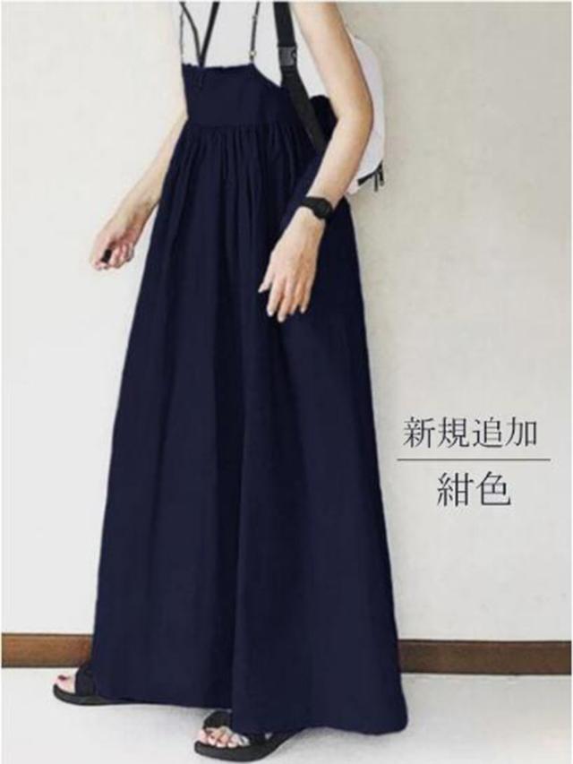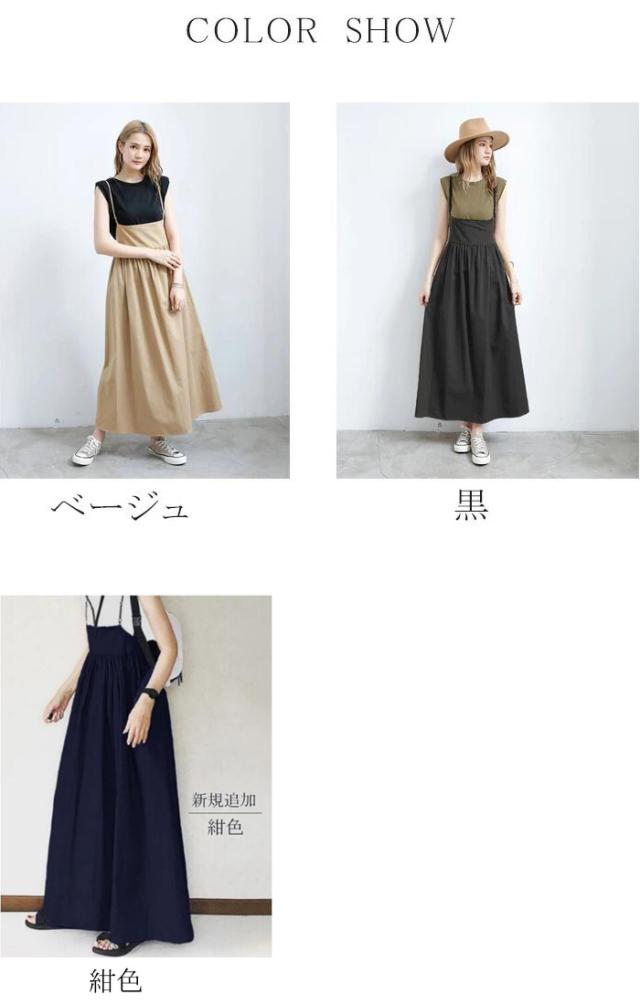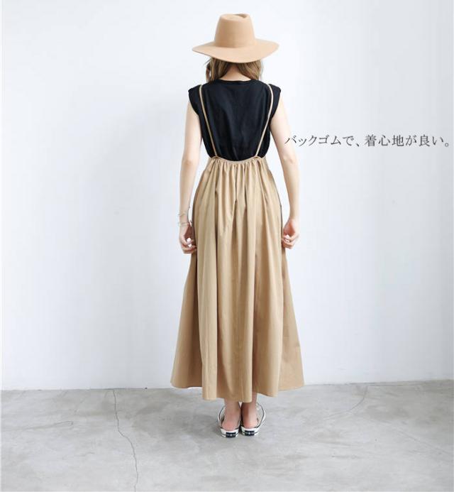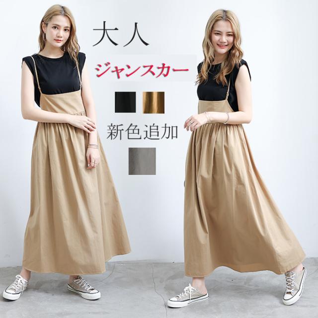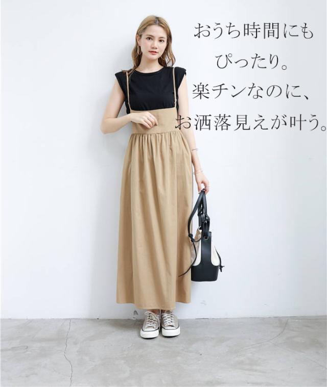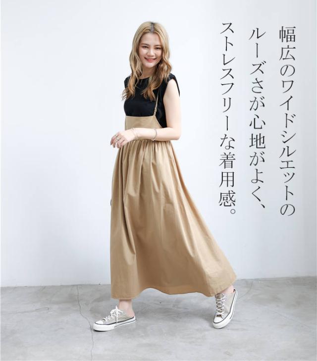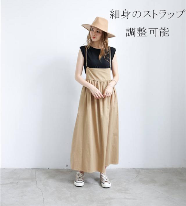 ジャンパースカート サロペット キャミソールワンピース レディース フレア プリーツ ロングワンピース 大人 可愛い 楽ちん 体型カバー ベージュ 黒