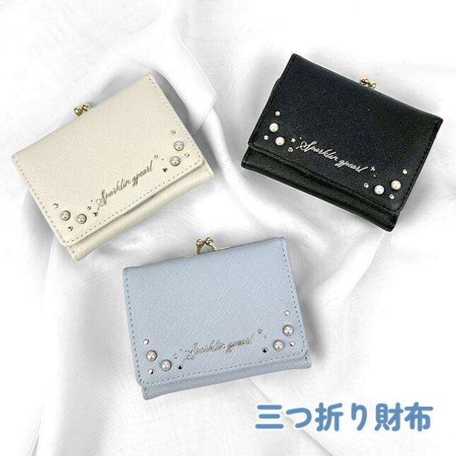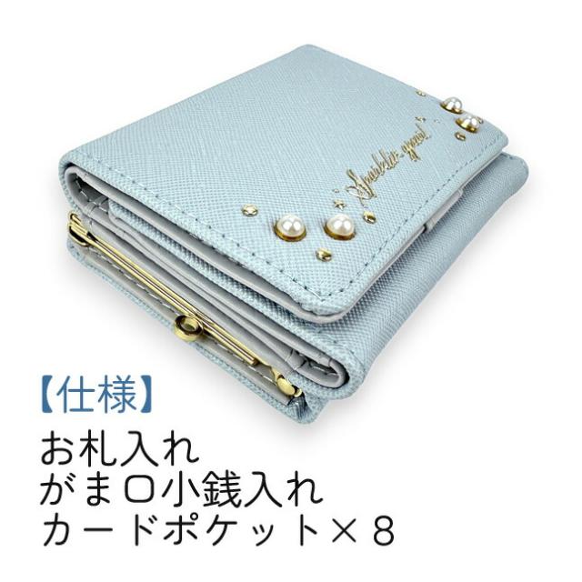 シュワッとはじけるように可愛いパールやスパンコールが可愛い三つ折り財布。