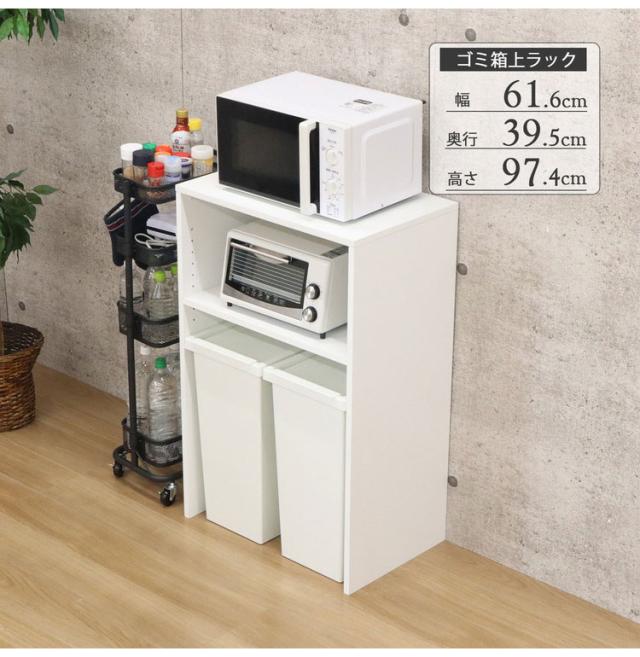 レンジ台 ゴミ箱 収納 ゴミ箱上ラック レンジラック ゴミ箱上収納 キッチンラック キッチン収納 棚 幅61.6cm 棚調節可能 ゴミ箱 木製 家電収納 家電 レンジ 大型レンジ対応 シンプル(代引不可)【送料無料】