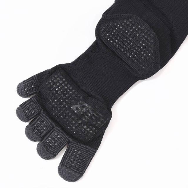 底面のシリコングリップが適度なグリップを生み出し、つま先部の強度の高い糸が耐摩耗性もアップ。
