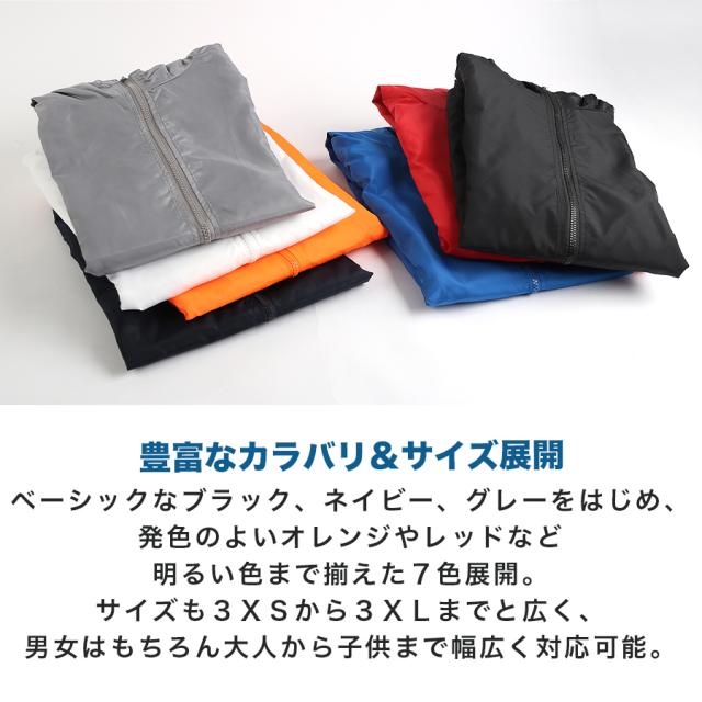 シンプルな無地デザインで普段使いはもちろん、レジャーや運動、通勤・通学にも使えるウインドブレーカー。