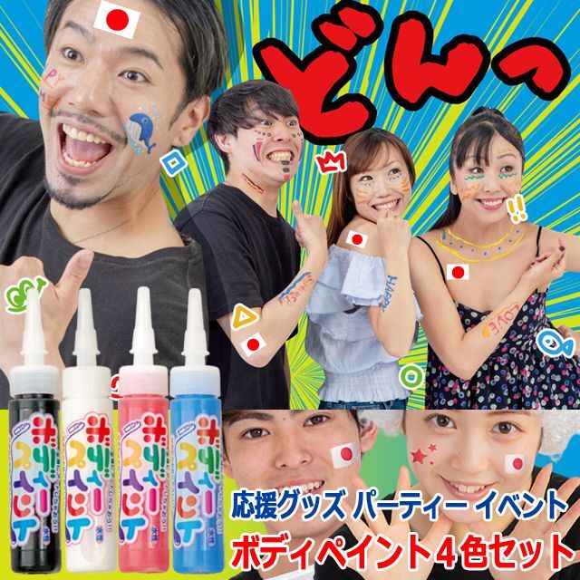 スポーツ観戦 ペン型 黒 白 赤 青 4色組(日本応援グッズ パーティー イベント ボディペイント4色セット) コスプレ パーティ イベント