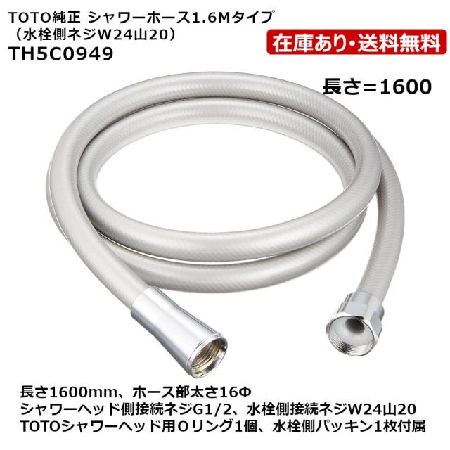 TH5C0949:TOTO《在庫あり・送料無料》シャワーホース(1600mm) ヘッド側G1/2・水栓側W24山20 樹脂・シルバー色