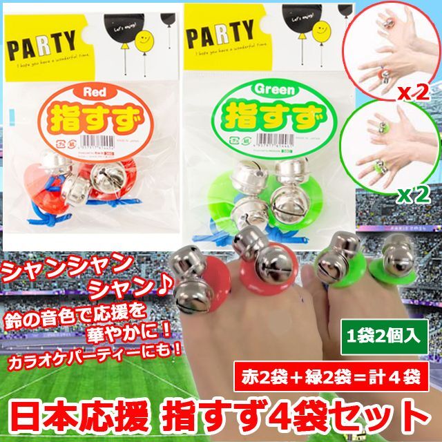 イベント パーティー カラオケ ゆび鈴 2色 計8個(日本応援グッズ 指すず4袋セット) 赤x2袋 緑x2袋 クリスマス 忘年会 余興 景品