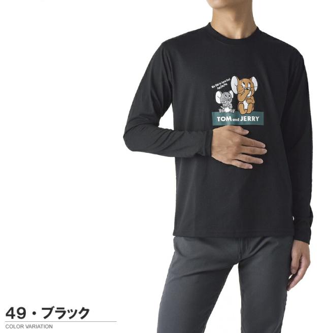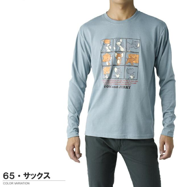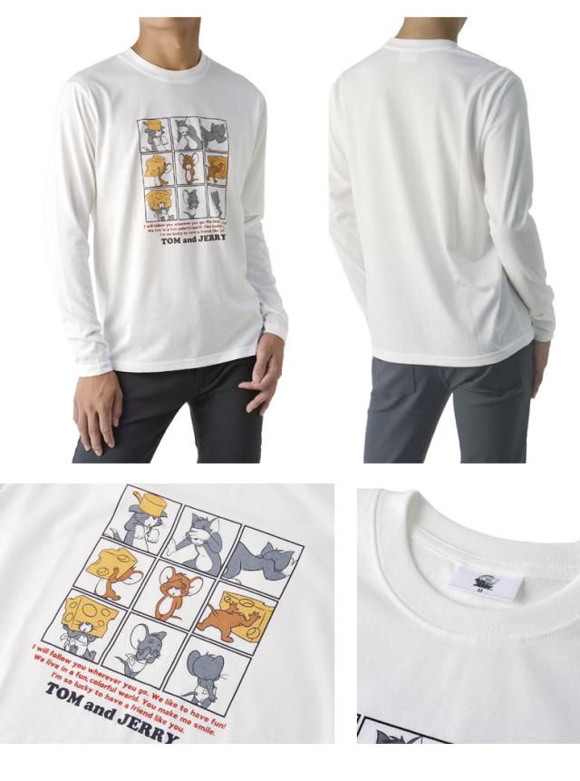 Tom & Jerry トムアンドジェリー メンズ プリント 長袖Tシャツ 丸首 クルーネック 目隠しプリント タフィー プリント【A5I】【パケ2】