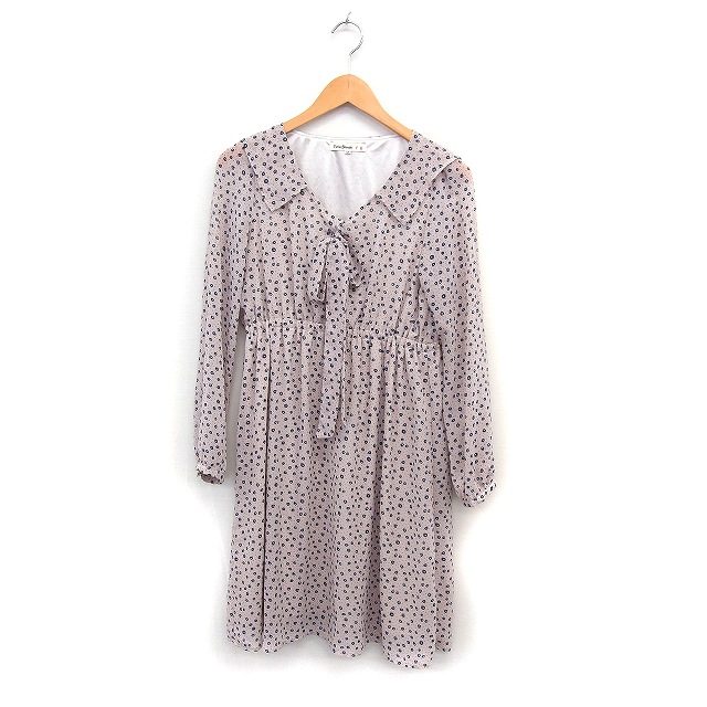 【中古】キューティーブロンド Cutie Blonde 小花柄 ドット ワンピース 長袖 ひざ丈 ボウタイ セーラーカラー ベージュ