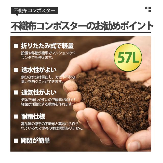 しかしこの不織布コンポスターはとても軽く折りたためることもできるので持ち運びが簡単。