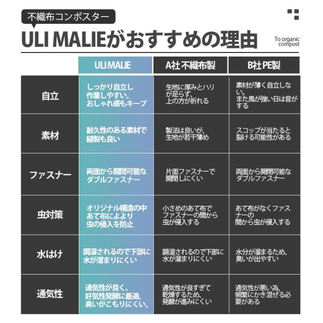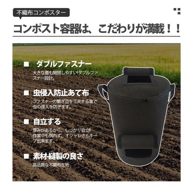 また、不織布コンポストは生地が薄く自立しない商品が多い中、