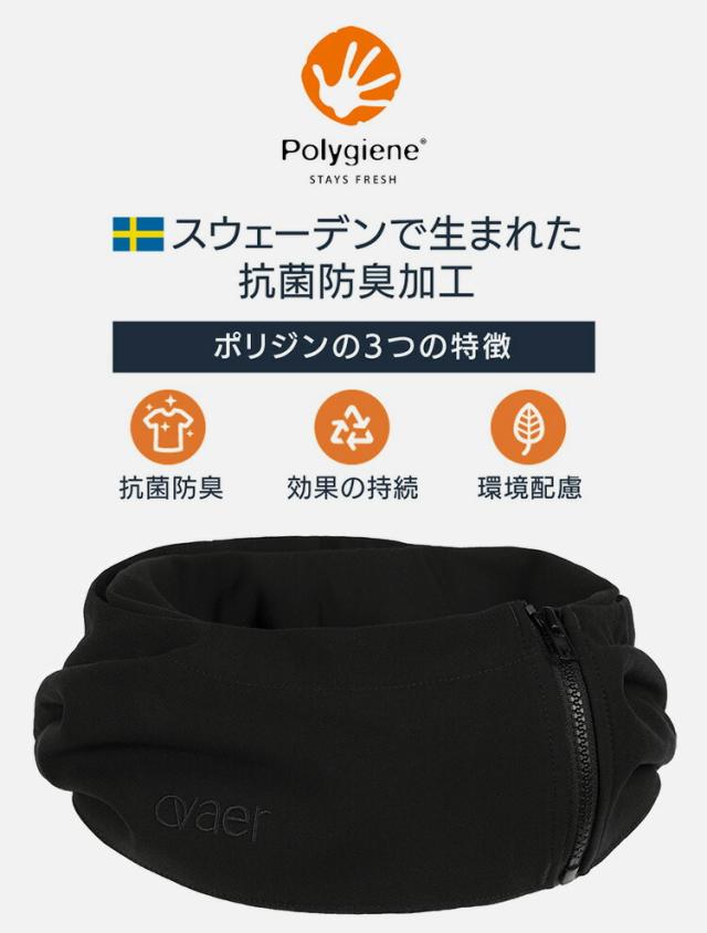 同じくスウェーデン生まれ、ポリジン社で開発された抗菌防臭テクノロジー「Polygiene BioStatic™(ポリジン・バイオスタティック)」が新たに施されました。 気になる汗のニオイや菌の繁殖を抑えるテクノロジーにより、頻繁な洗濯は不要です。 |