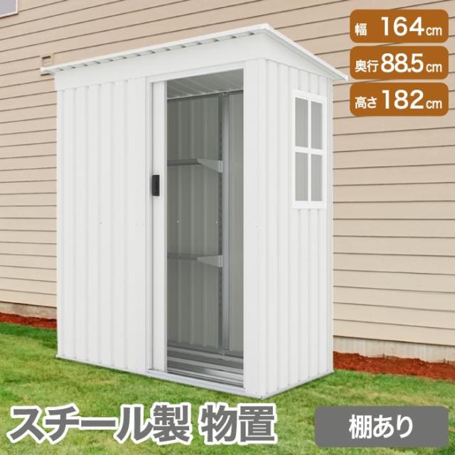 組立式 棚あり 大型物置 屋外 倉庫 戸外収納庫 防水 耐候性 収納 物置き ゴミ置き場 マルチストッカー ガーデン 庭 農場 頑丈 大容量 スチール 引き戸 窓付き スチール製収納庫 棚板耐荷重20kg 容量1900L 可動棚 補強フレーム付き