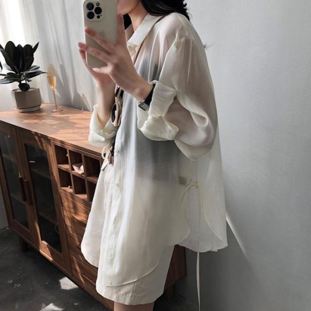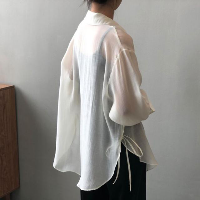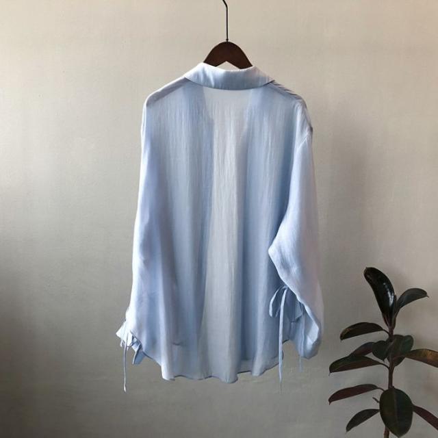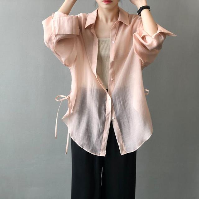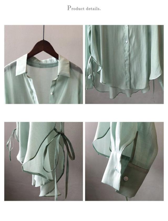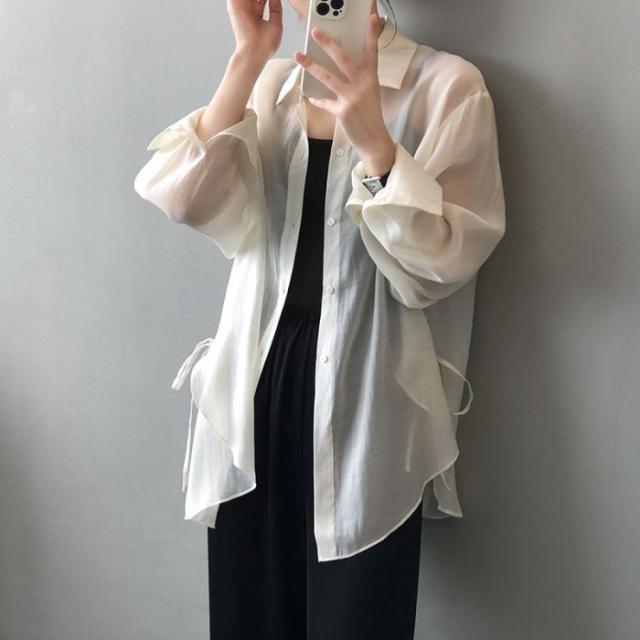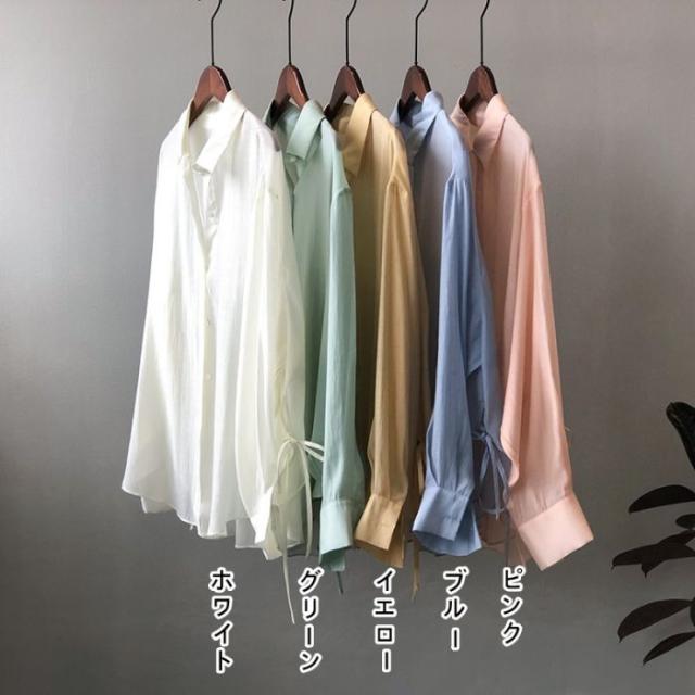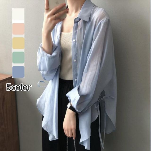 シアーシャツ レディース トップス シャツ オーバーシャツ ブラウス 長袖 夏 春 リボン 日焼け止めシャツ 薄手 涼しい