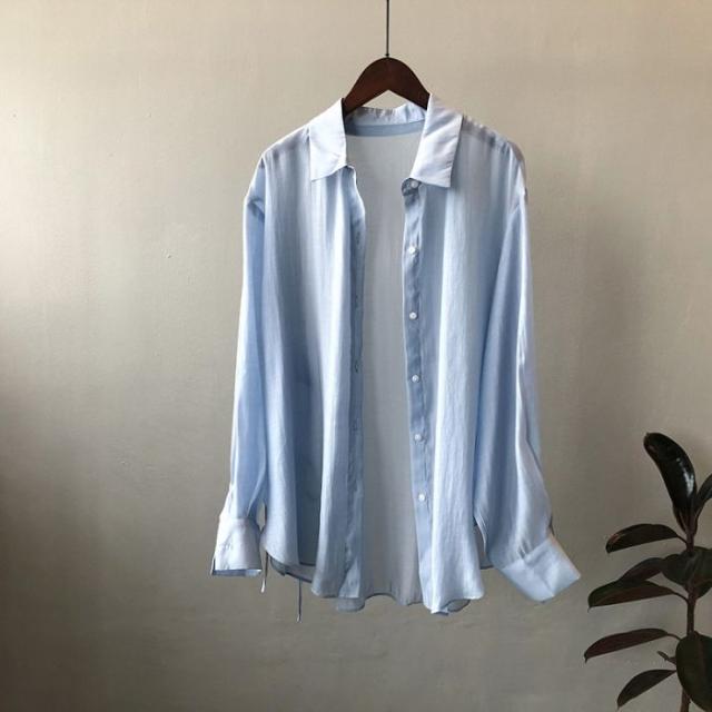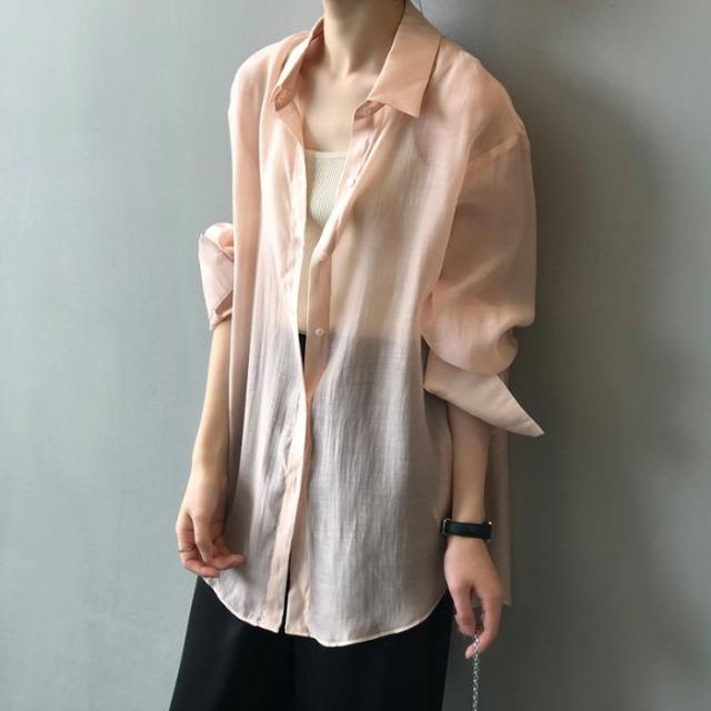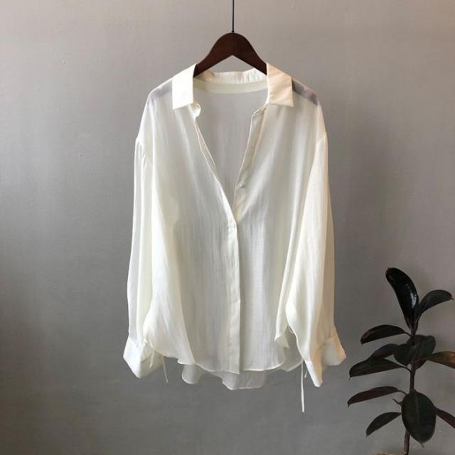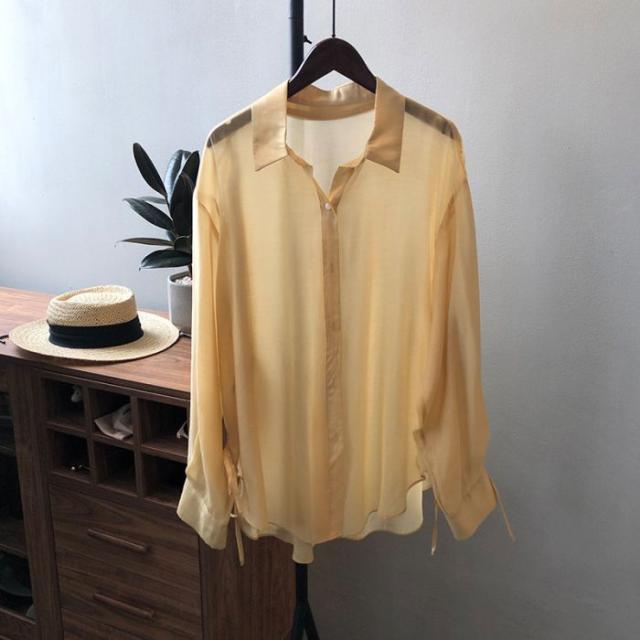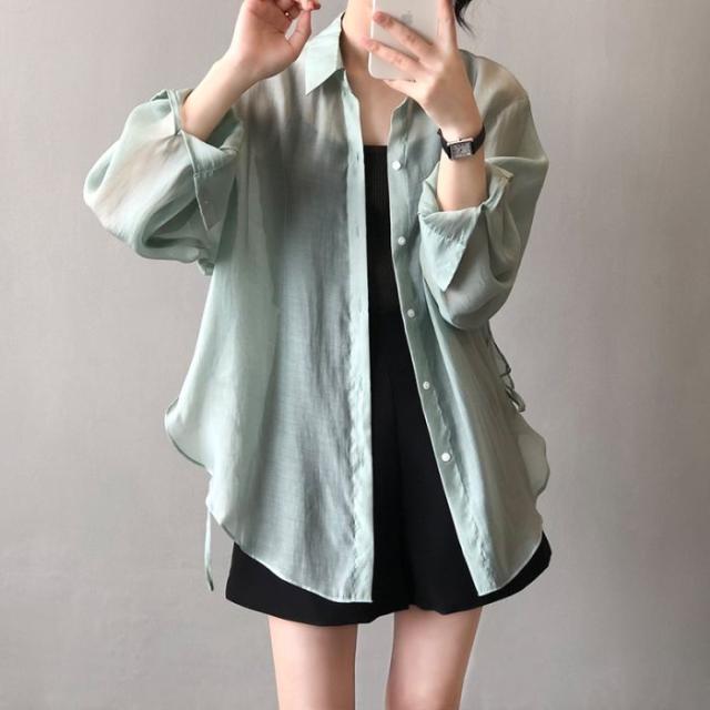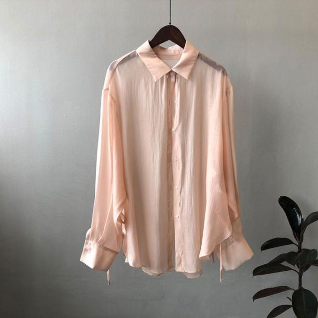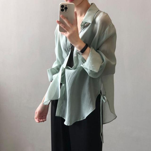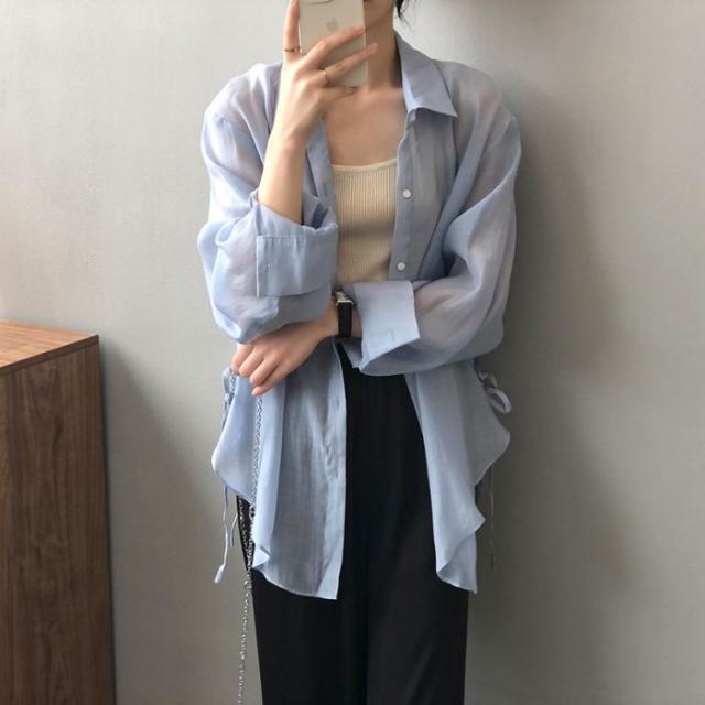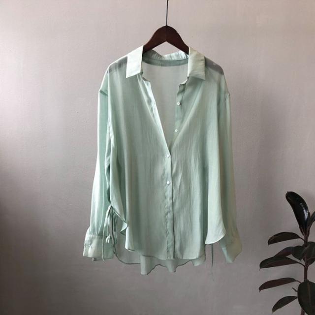 シアーシャツ レディース トップス シャツ オーバーシャツ ブラウス 長袖 夏 春 リボン 日焼け止めシャツ 薄手 涼しい