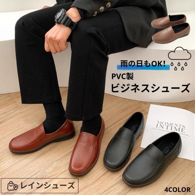 ローファー ビジネスシューズ レインシューズ 雨 軽量 しみこみにくい スリッポン シューズ メンズ 男性 紳士 靴 くつ レザ