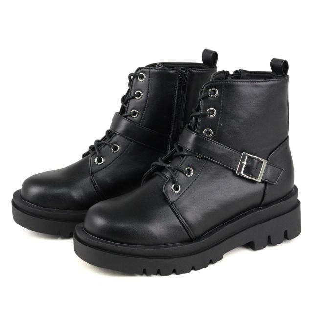 「UNISEX」22.5=27.0cm★軽量厚底ライダーステイスト レースアップブーツ★9105