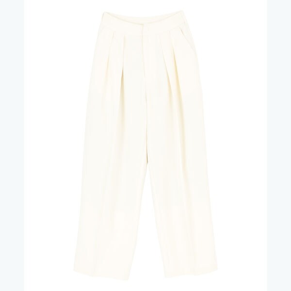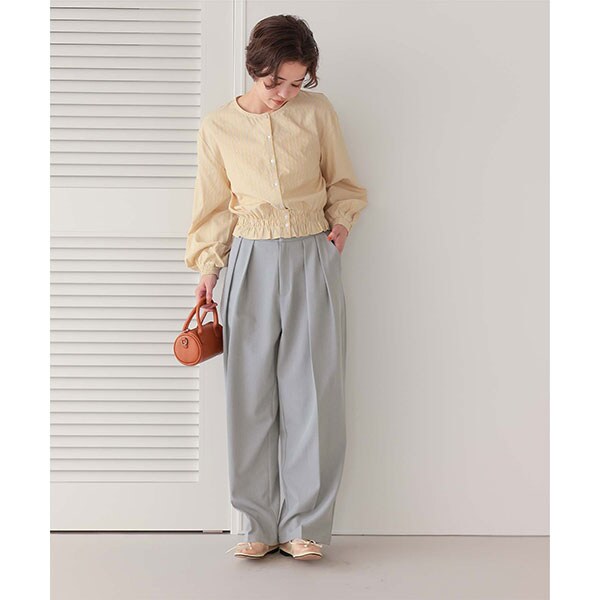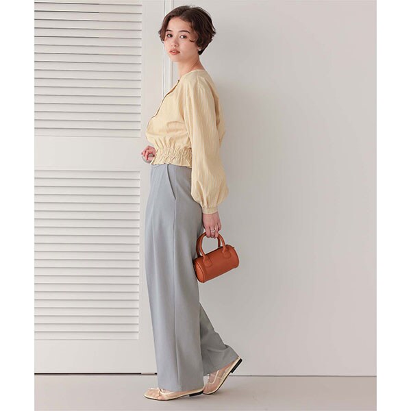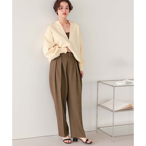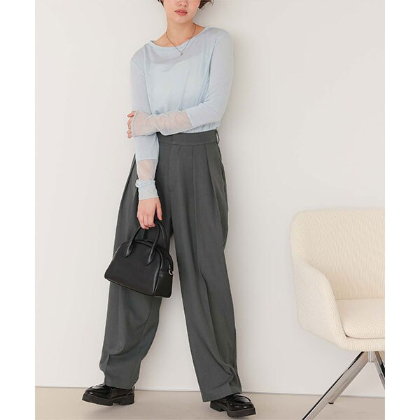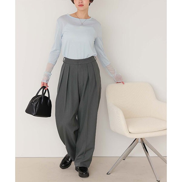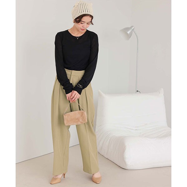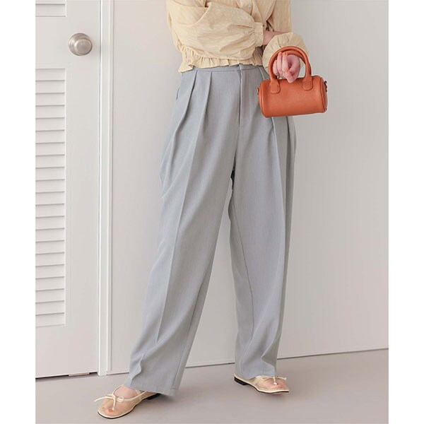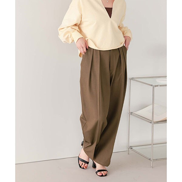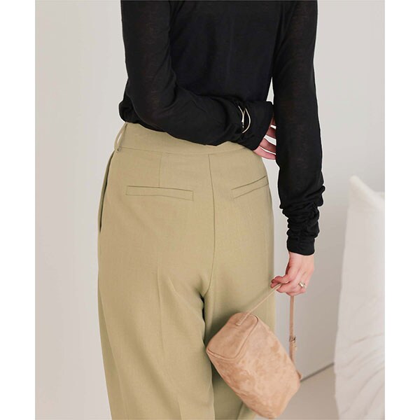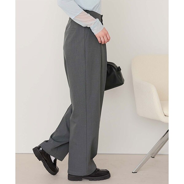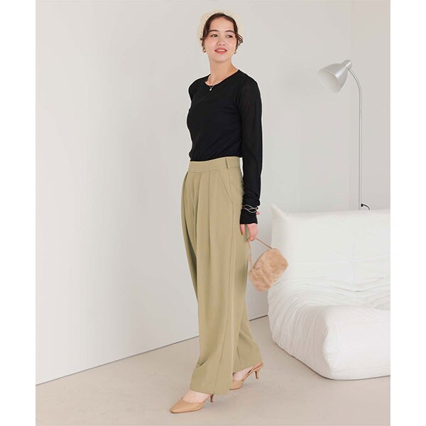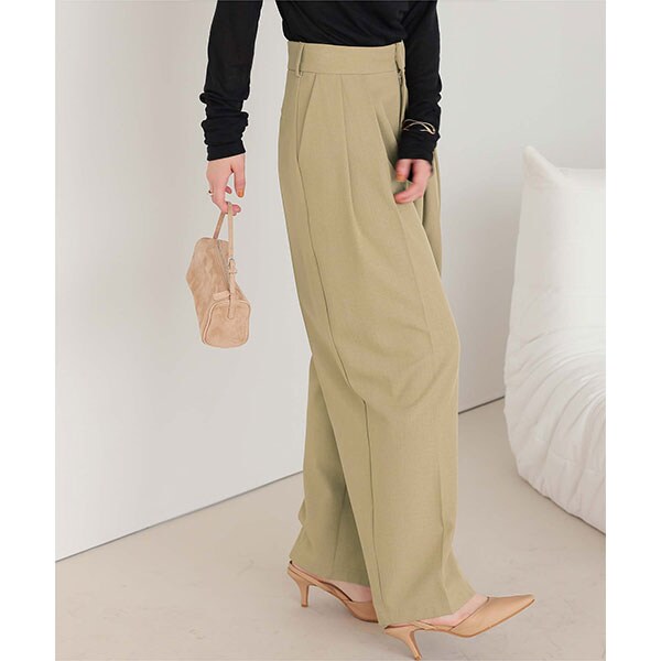 ・センタープレスで脚が綺麗に見えるワイドパンツ。