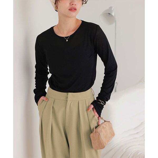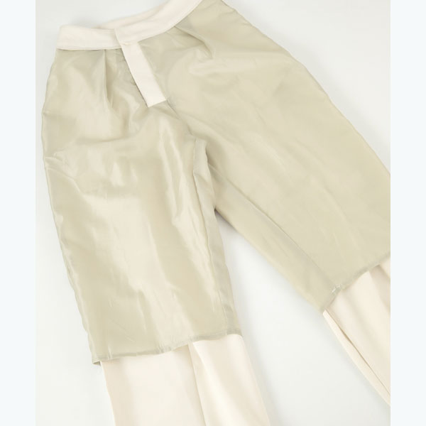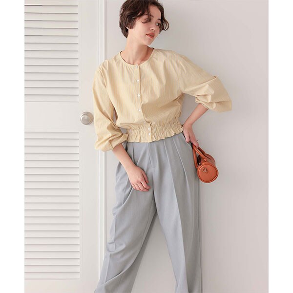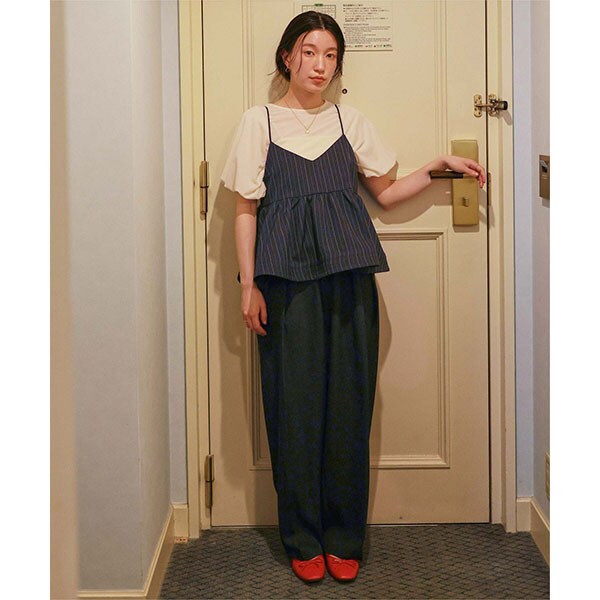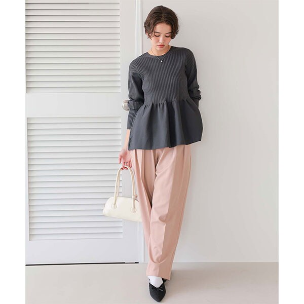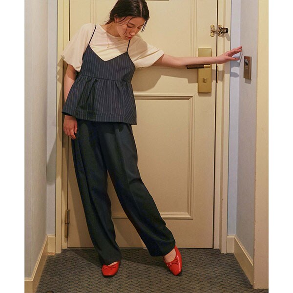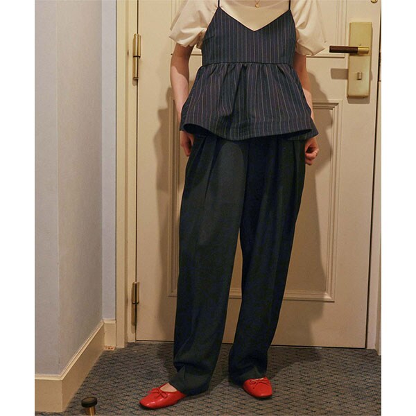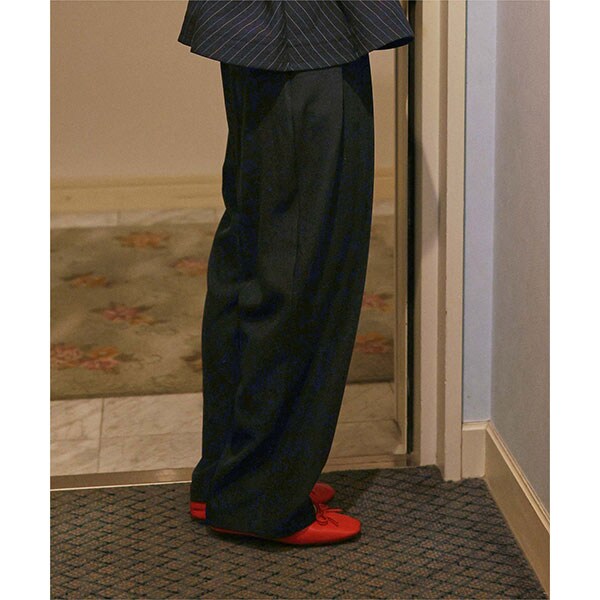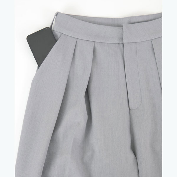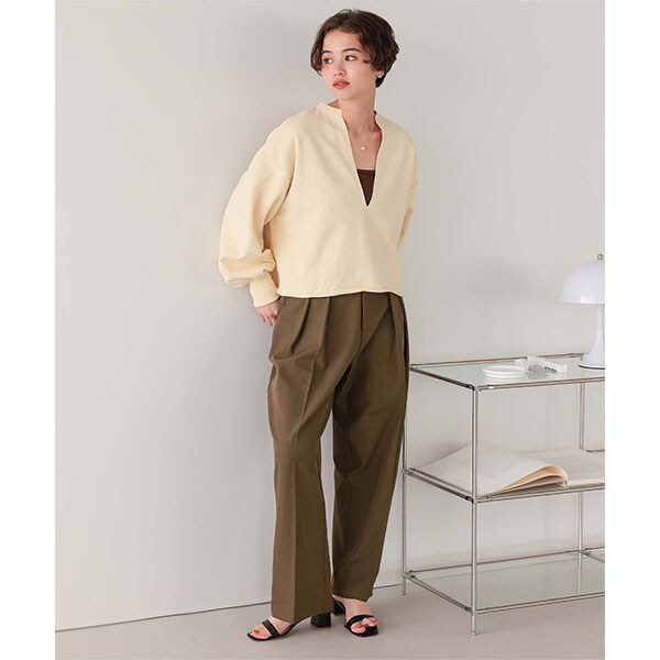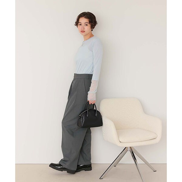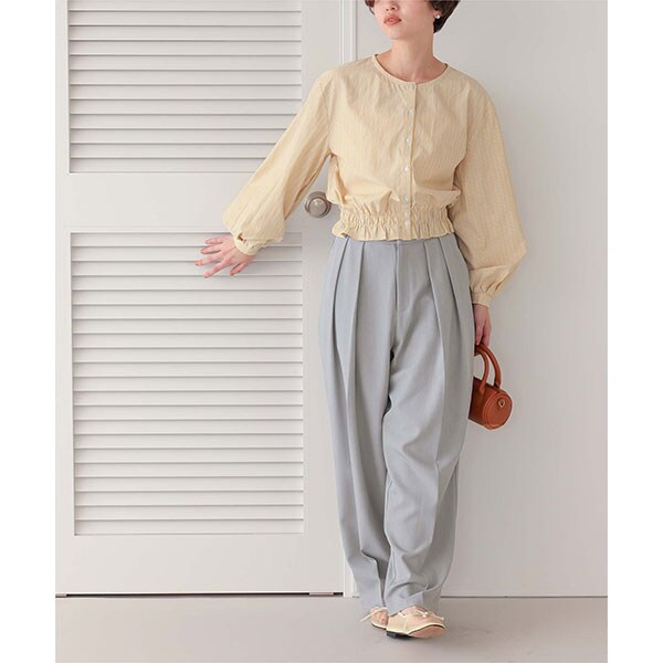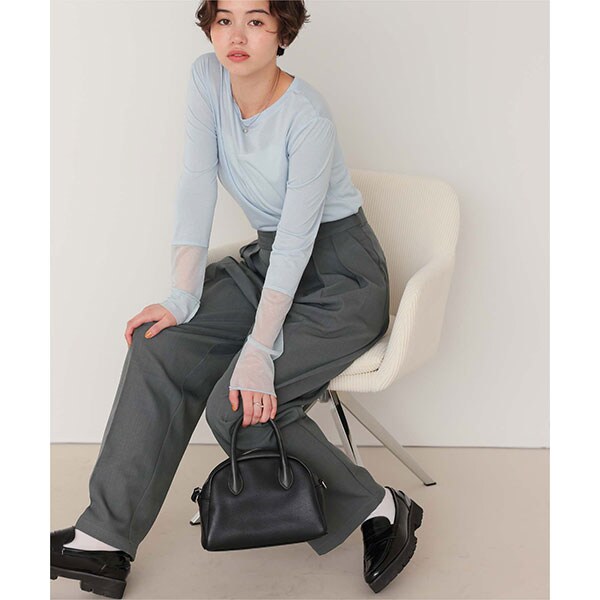 ・センタープレスで脚が綺麗に見えるワイドパンツ。