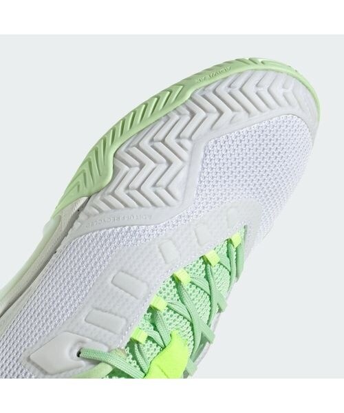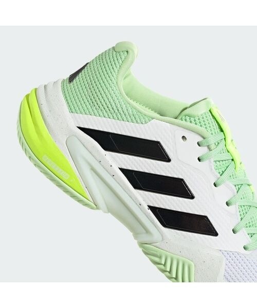このバリケード テニスシューズを履いて、コートを支配しよう。トルションシステムが試合の流れを変える安定感を発揮し、左右非対称のシューレースが足をしっかり固定し、素早いカットやスライドに貢献。REPETITORミッドソールがサポート力を発揮し、次の一歩へのスムーズな移行をかなえる。さらに、Geofitセンスポッドがかかとの形に自然にフィットして、マッチポイントまで足元を快適に支える。この製品は、リサイクル素材を20%以上使用。製造された製品の素材をリユースすることで、ゴミの量、限りある資源への依存、そしてアディダス製品のフットプリントを減らすことにつながる。