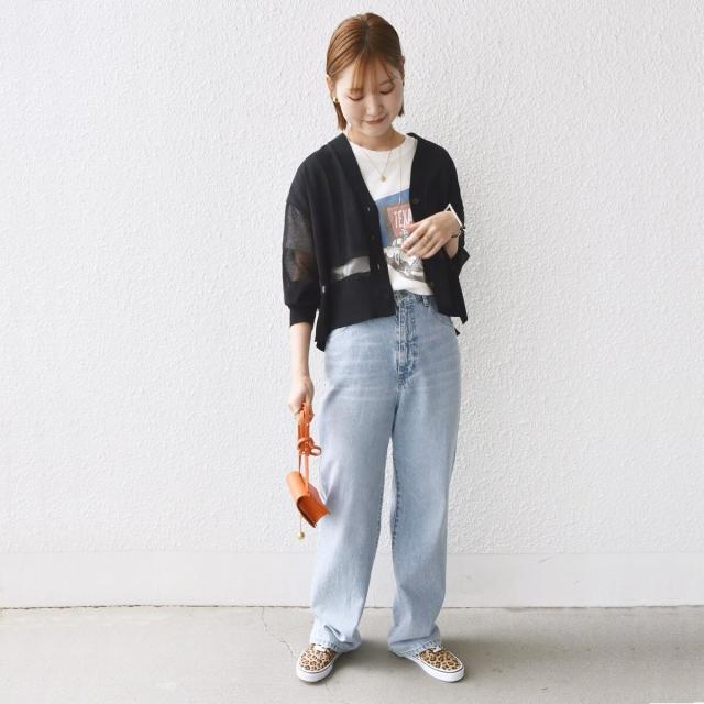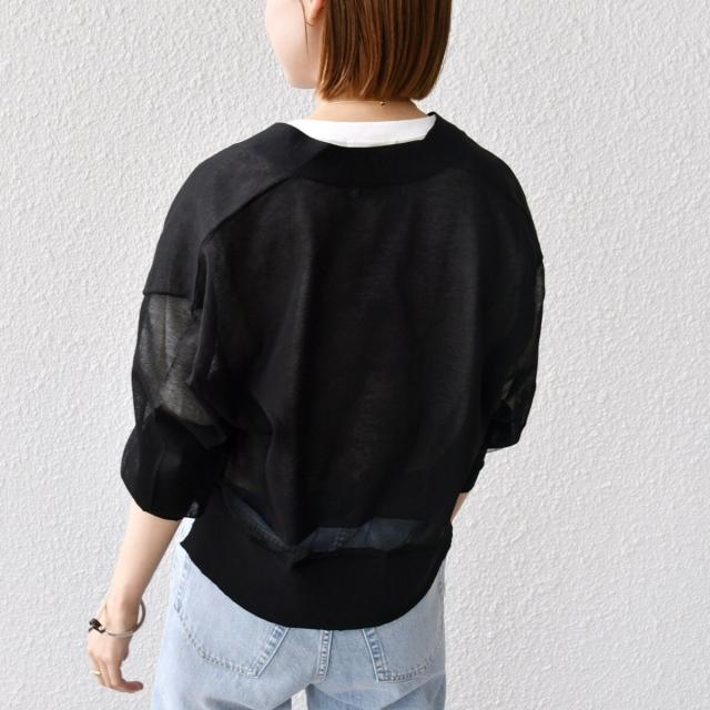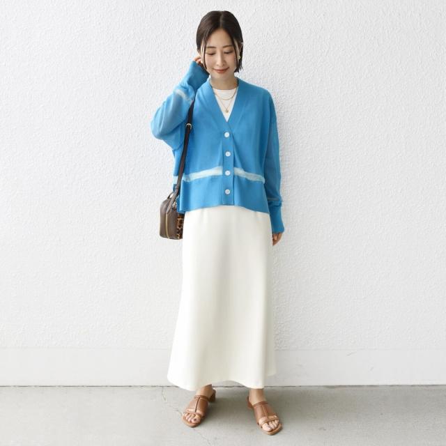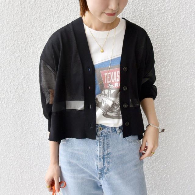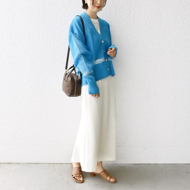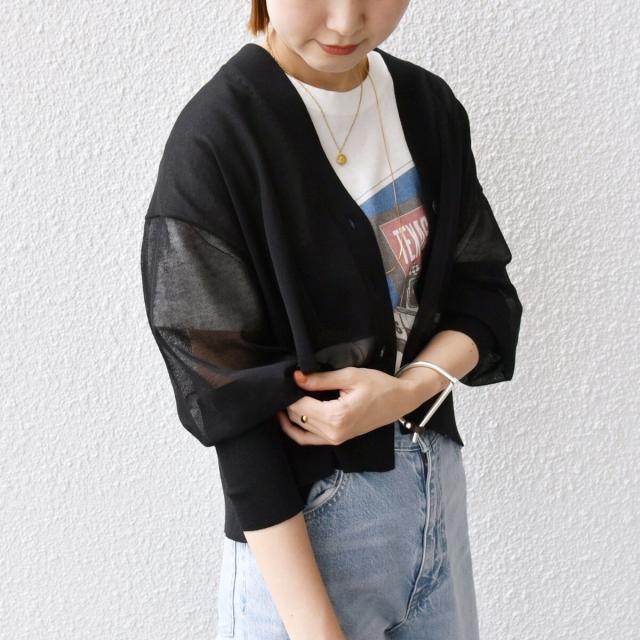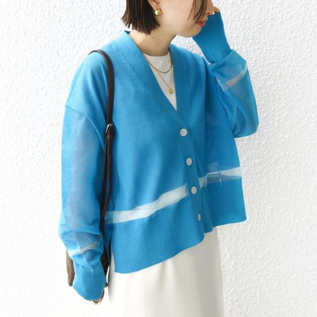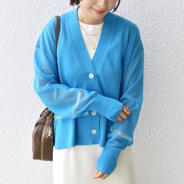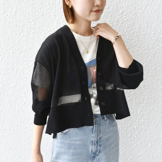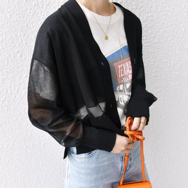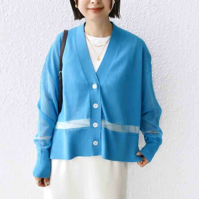 部分使いのシアーが軽やかな印象を与えてくれる端境期おすすめのカーディガン