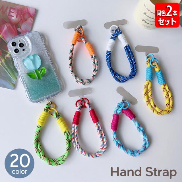 ハンドストラップ 同色2本セット スマホストラップ ショートストラップ 手首 手ぶら 落下防止 紛失防止 挟むだけ ロープ 紐
