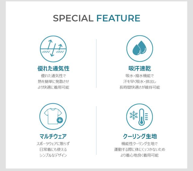 接触冷感技術を採用しており、暑い日でも肌に触れると涼しさをキープ。デザインは、体にぴったりとフィットし、運動中の動きをサポート