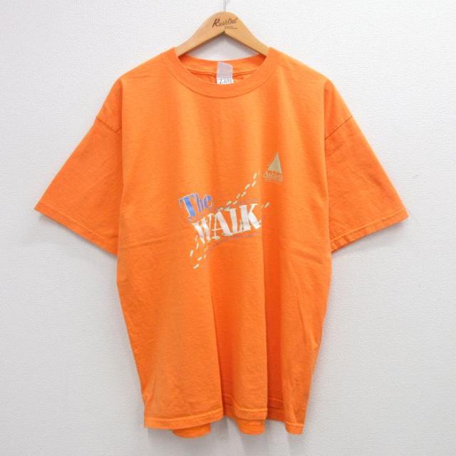 古着 半袖 ビンテージ Tシャツ メンズ 00年代 00s akademiks ロング丈 大きいサイズ コットン クルーネック オレンジ XLサイズ 中古 古着