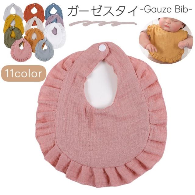 スタイ ガーゼ ガーゼスタイ よだれかけ ベビー 赤ちゃん 乳児 子供 子ども 女の子 フリル スナップボタン 無地 シンプル