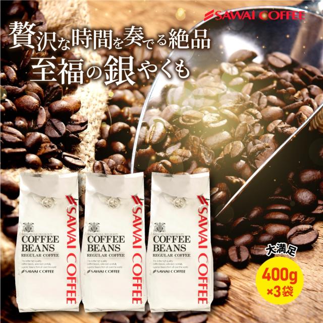 焙煎したて レギュラー コーヒー豆 400g×3袋 珈琲豆 コーヒー 福袋 大容量 1.2kg 中挽き/豆のまま コーヒー専門店 120杯分 セット 銀のやくもブレンド 1.2kg 澤井珈琲