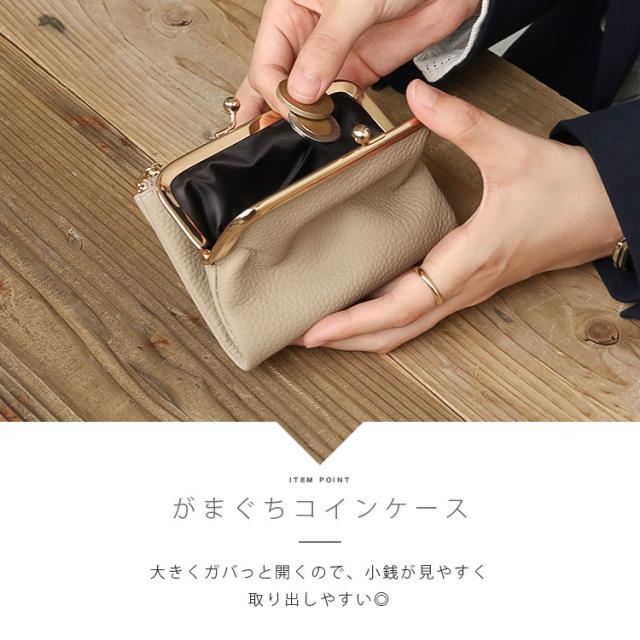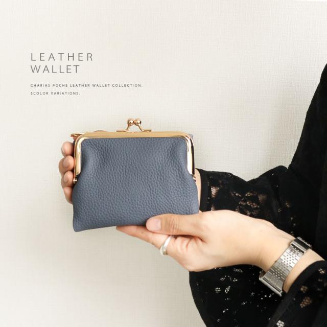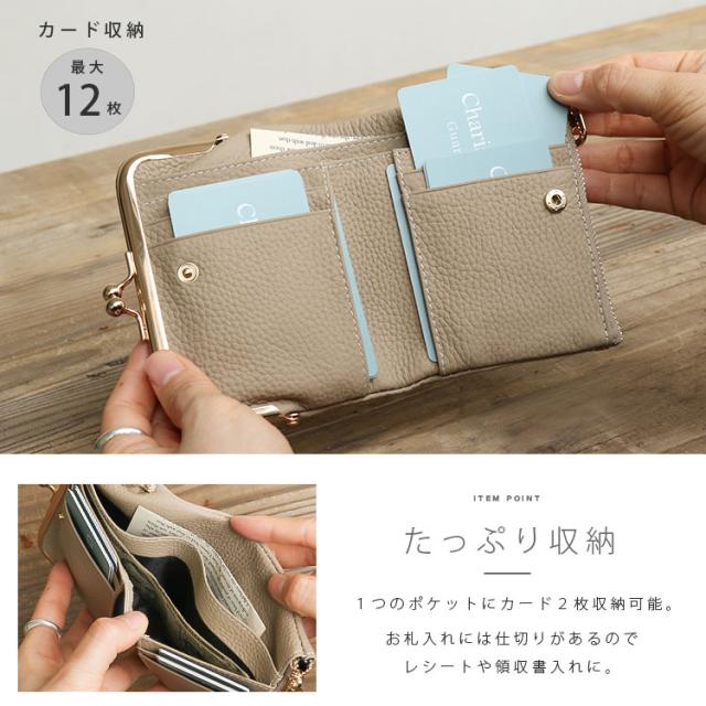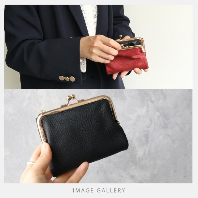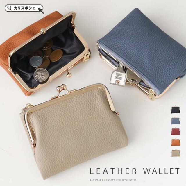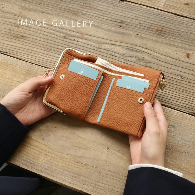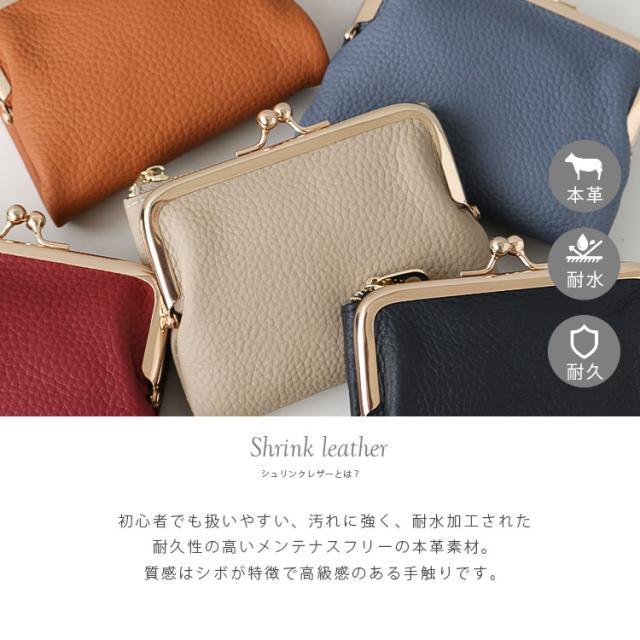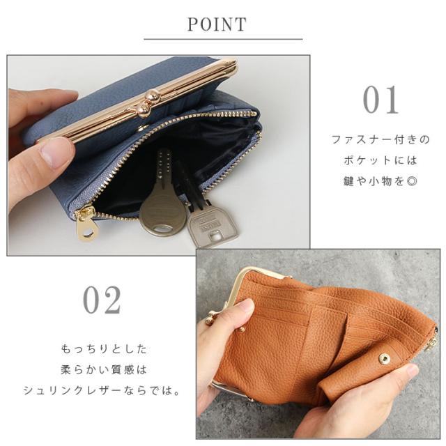 表面のシボとマットな質感が特徴の高品質なシュリンクレザーを使用して製作したがま口が可愛い二つ折り財布です。がま口、ファスナーポケット部分の収納は独立しているので財布を開かない状態でもアクセスができて便利です。お札、小銭、カードと一通りの物をコンパクトに収納することができます。