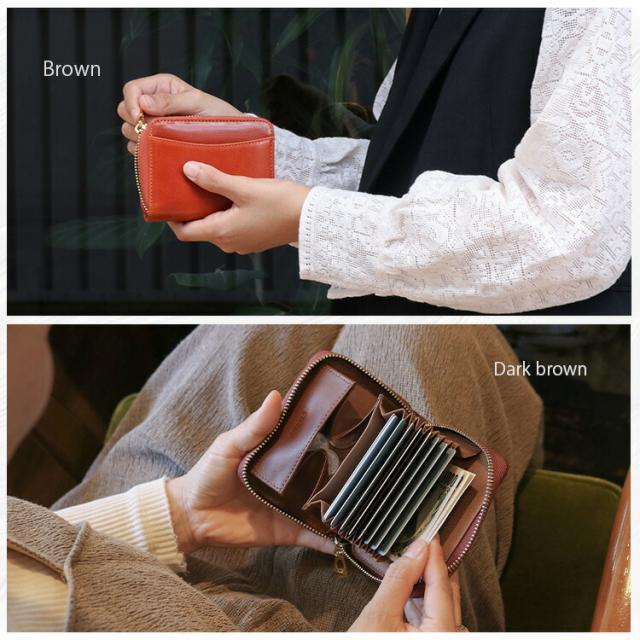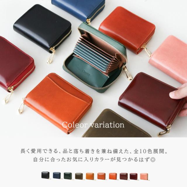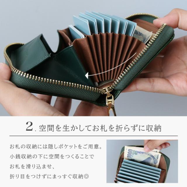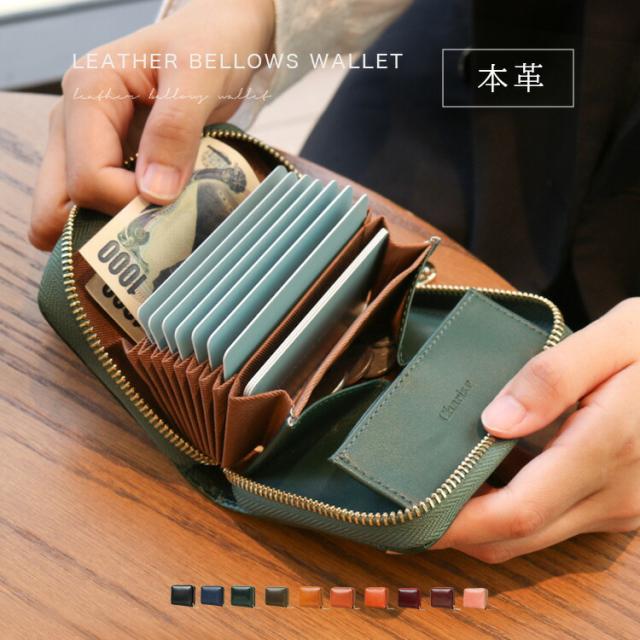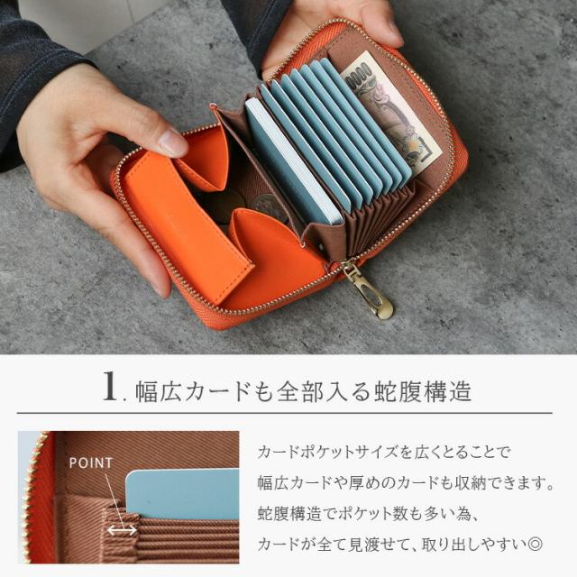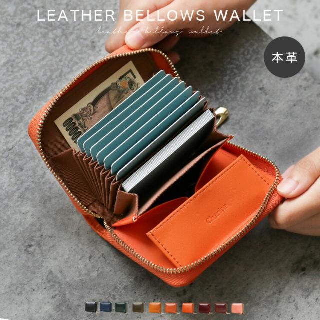 カードケース 大容量 ジャバラ 財布 レディース 本革 バケッタ製法 イタリアンレザー アコーディオン ラウンドファスナー 小銭入れ レディース財布 ブラック ブラウン キャメル ダークブラウン グリーン ネイビー レッド ab-lw510