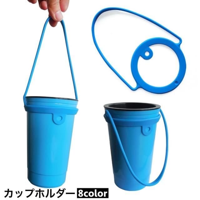 カップホルダー ドリンクホルダー コップ 手提げ ストラップ 紐 伸縮性 伸びる アウトドア 持ち運び 単色 シンプル