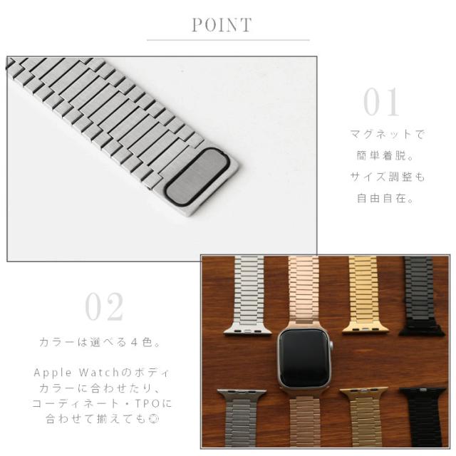 アップルウォッチ 替えバンド ステンレス バンド マグネット式 フリーサイズ メンズ 高級 替え ベルト 金属アレルギー 対応 サージカルステンレス Apple Watch 44mm 45mm Series 4 5 6 SE 7 8 9 ab-wc009