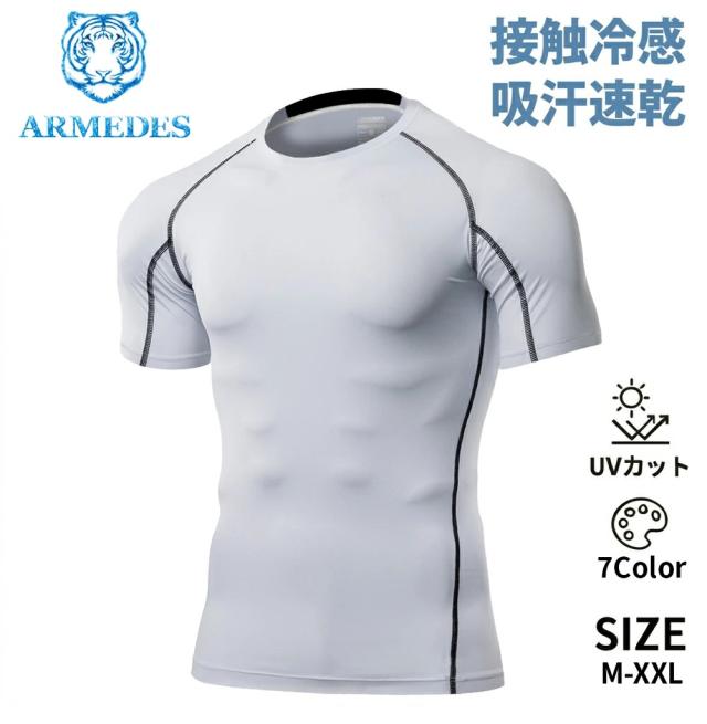 送料無料 ARMEDES アルメデス コンプレッション インナー アンダーウェア UVカット 接触冷感 吸汗速乾 通気性 ストレッチ クーリング生地 半袖 日常 トレーニングウェア ランニン メンズ M-2XL 全7色 オールシーズン AR58
