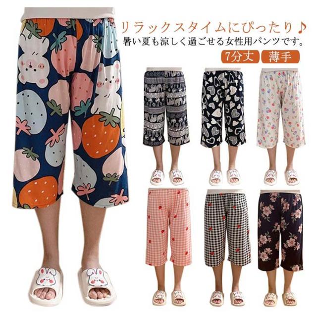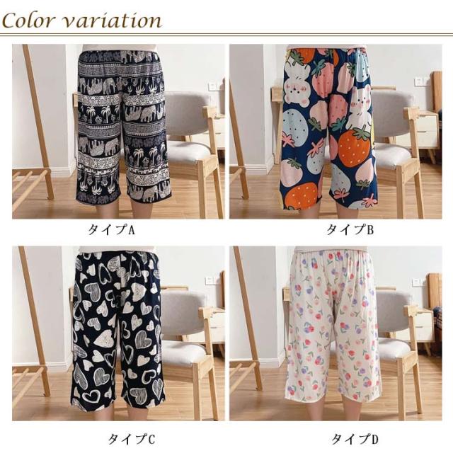 花柄 ルームパンツ ステテコパンツ 総柄 パンツ 涼しい 夏用 レディース イージーパンツ ルームウェア リラックスパンツ ステテコ 7分丈 パジャマ ワイドパンツ 夏 ボトムス 部屋着 ウェストゴム おしゃれ かわいい 薄手 婦人 ステテコ 夏パンツ 春 夏 秋