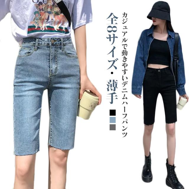 短パン デニムパンツ レディース 5分丈パンツ デニムハーフパンツ ショーパン 大きいサイズ おしゃれ デニムパンツ 無地 シンプル ハーフパンツ デニム 着?せ プレゼント 20代 30代 40代 カジュアル 薄手 夏服 涼しい ギフト 5分丈