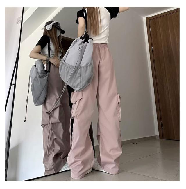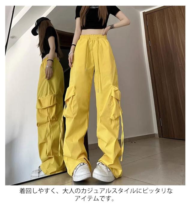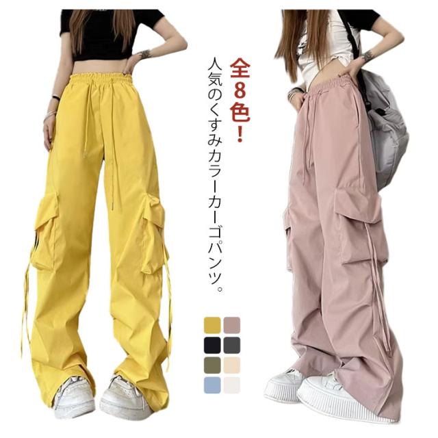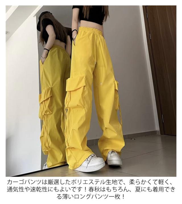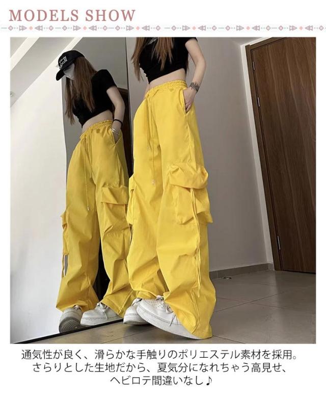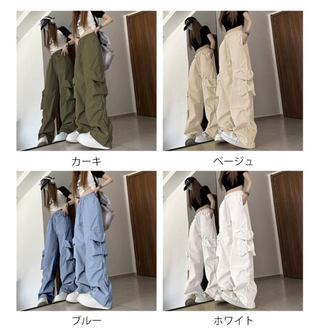 薄手 長ズボン ハイウエスト レディース ストレートパンツ 夏 カジュアルパンツ ストリート系 ワイド 大きいサイズ カーゴパンツ ストリート系 ミリタリーパンツ ロングパンツ 春 夏 秋 軽い 薄い ウェストゴム