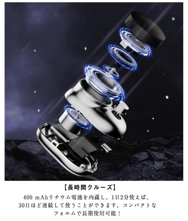 | サイズについての説明 | サイズ:65*46mm 電池容量:400mAH 充電時間:約1h 充電方法:TYPE-C USB充電 電源:DC 5V 待機時間:60日 |