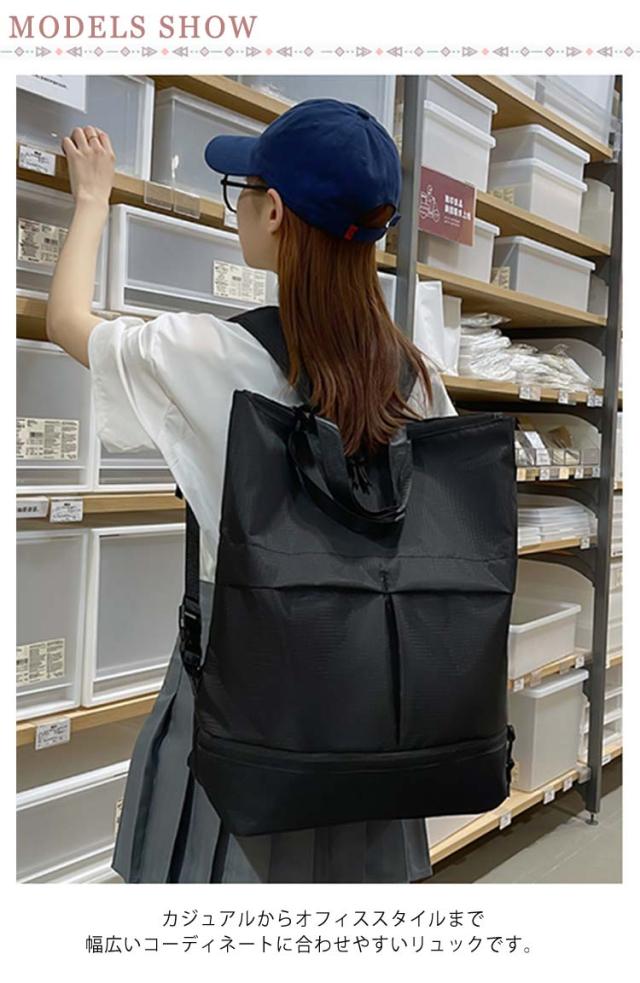 | ・リュックにもなって両手が使える大容量の2WAYトートバッグ ・カジュアルからオフィススタイルまで幅広いコーディネートに合わせやすいリュックです。 ・たっぷり収納大容量 ・とても軽量なのでたくさん荷物を入れても安心です。 ・普段使いやマザーバッグにもおススメです。 | |