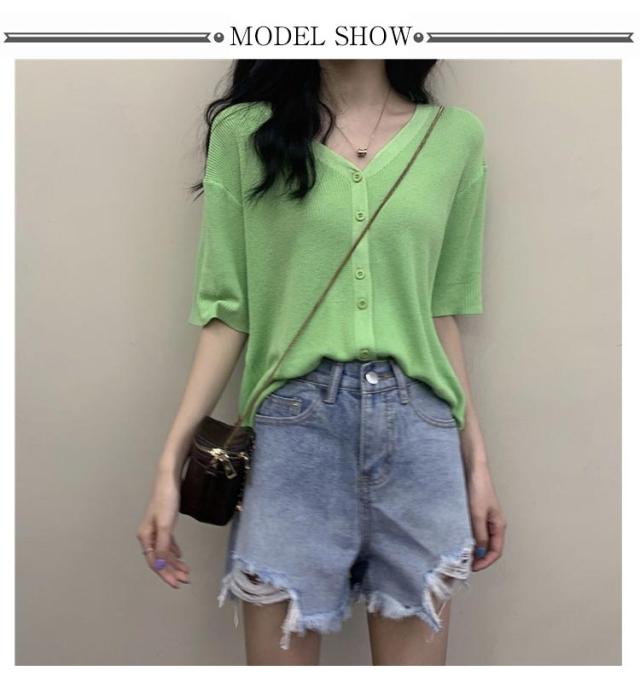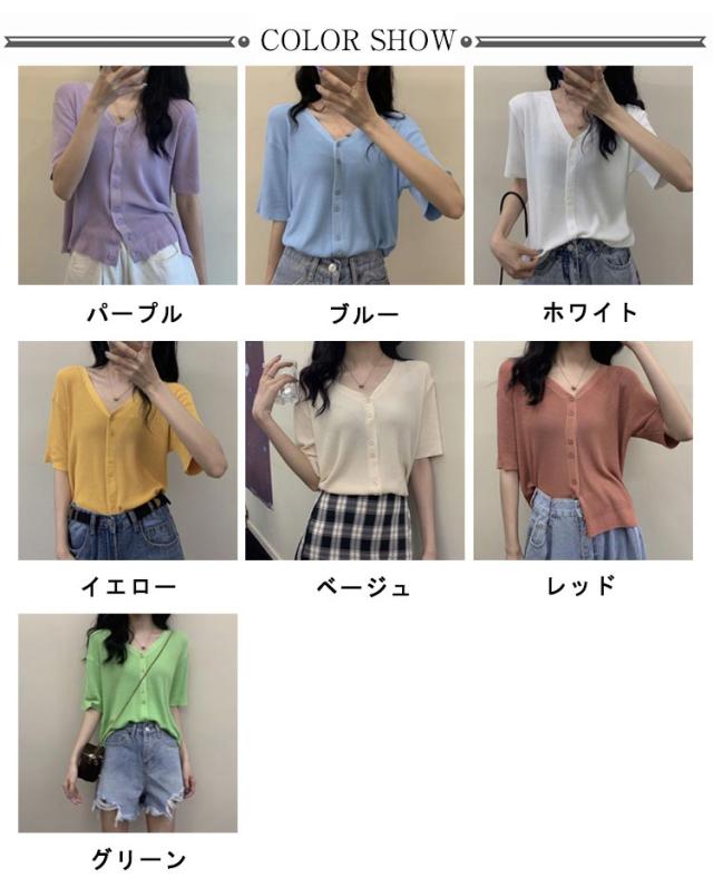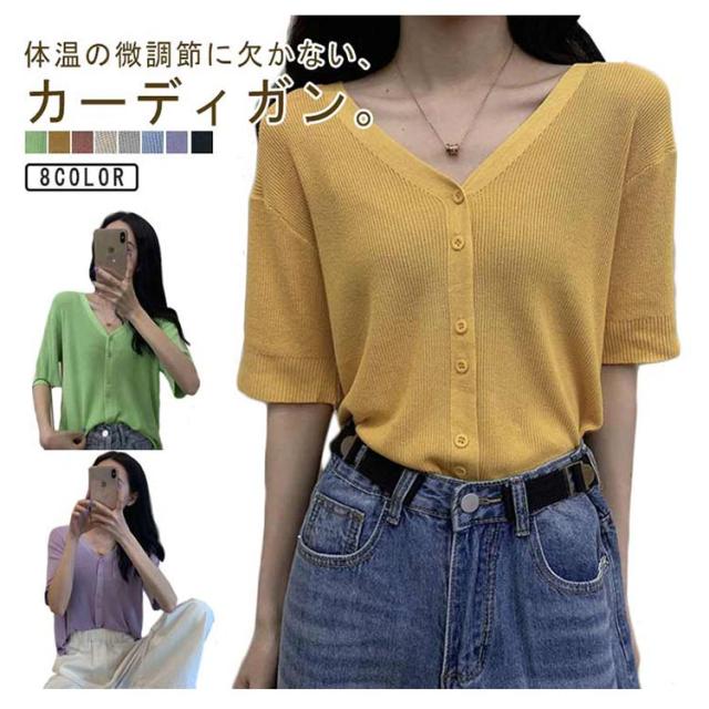 レディース トップス リブ カーデ ニットカーディガン 素材 カーディガン カットソー サマー 無地 ワイド Vネック 羽織 カーディガン 半袖 長袖 接触冷感 シアーニット レディース 半袖 春夏 薄手 レディース 春 夏 サマーニット