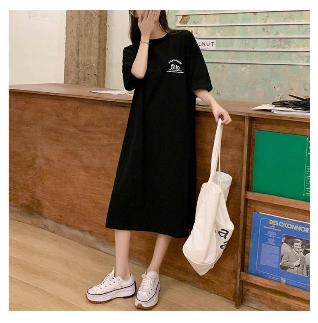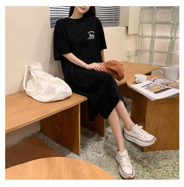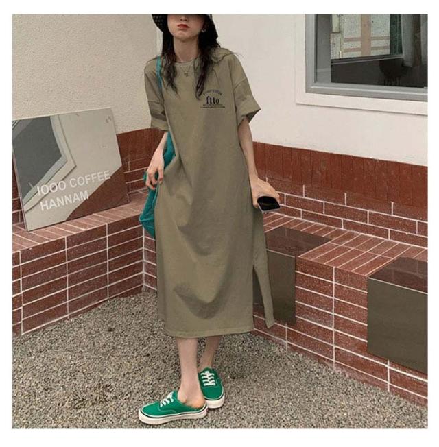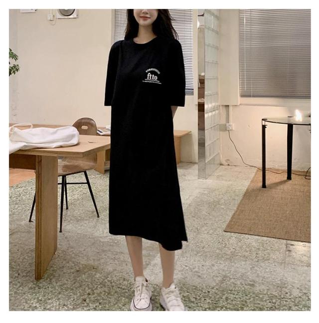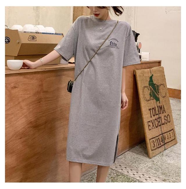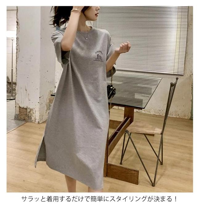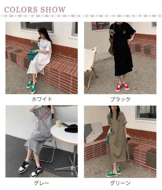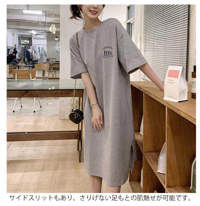 レディース ワンピ Tシャツワンピース Tシャツワンピ 春夏 丸首 スリット入り Tシャツワンピース レディース ワンピース 膝下 ロング 半袖ワンピ tシャツワンピース 韓国ファッション おしゃれ 半袖 tシャツ ワンピース