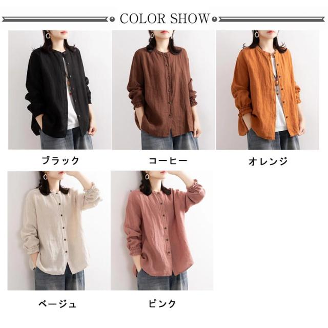 | ノーカラーの無地シャツ。 アウターとしてもつかえるシャツは初秋まで使える優秀アイテムです。 体形カバー効果もあるオーバーサイズシャツは毎日のコーデに活躍してくれること間違いなし! | |