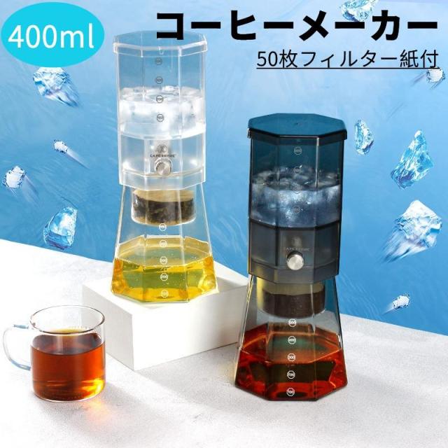 コーヒーメーカー 水出しコーヒーメーカー 水出しコーヒーボトル コーヒードリッパー 滴下式 水出しコーヒーポット コールドブリューメーカー 水出しポット ドリップコーヒー 耐熱 耐寒性 高ホウ素シリカガラス 無毒 無味 家庭用 コーヒー器具 50枚フィルター紙付き