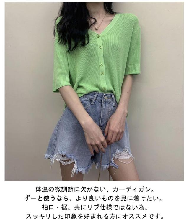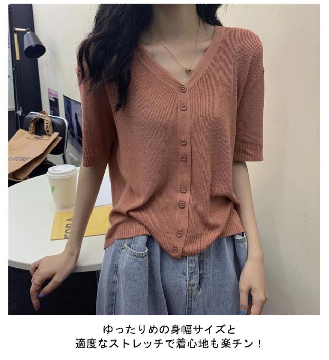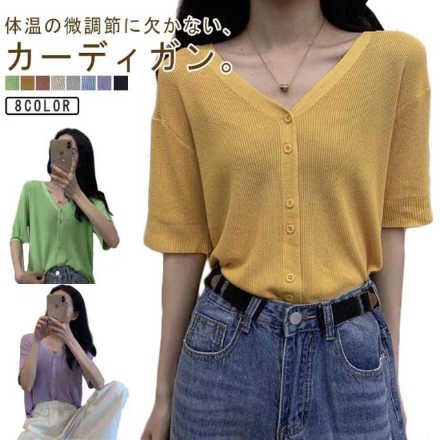 カーデ リブ 半袖 春夏 カーディガン トップス ニットカーディガン レディース カーディガン レディース 素材 無地 Vネック uvカット トップス 半袖 長袖 シアーニット 羽織 サマー 接触冷感 薄手 夏 春