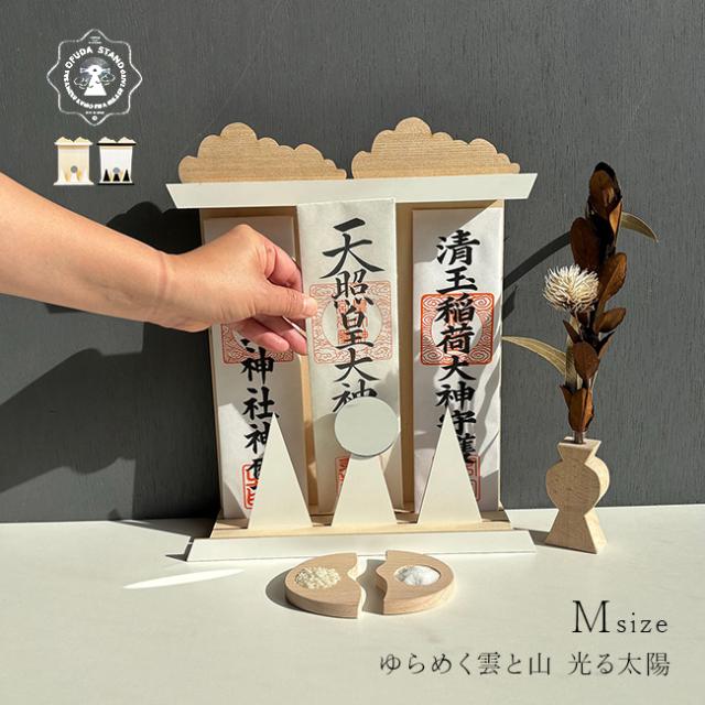 お札スタンド M ゆらめく雲と山 光る太陽(お札立て おしゃれ お札 立てる スタンド リビング 部屋 自宅 飲食店 神具 護符 神棚 御札立て 御札スタンド ナチュラル モダン かわいい 3柱 お祀り 神社 お正月) 即納