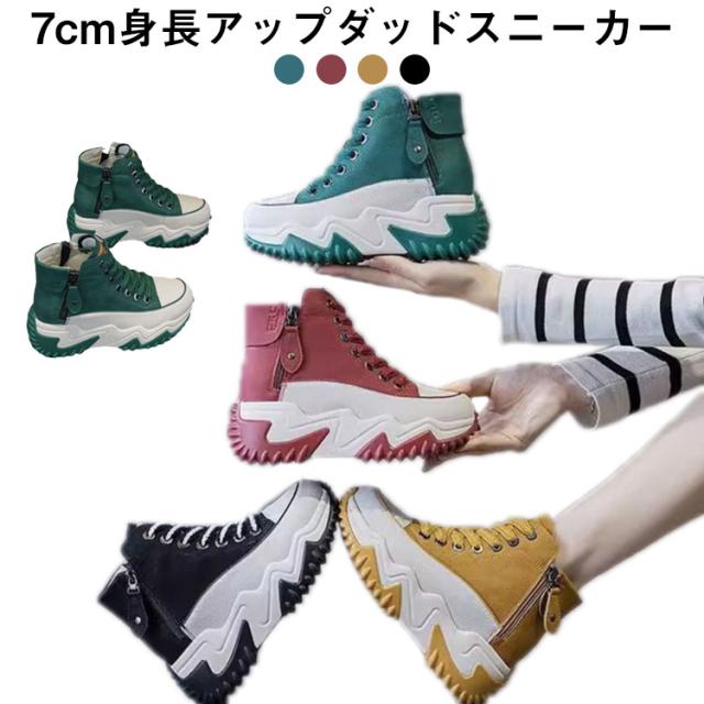 ダッドスニーカー レディース 厚底 スニーカー 厚底スニーカー ハイカットインヒール 7cm身長アップ レディース靴 ハイカット 美脚 歩きやすい 滑り止め シューズ カジュアル おしゃれ 可愛い 大人 女性 耐摩耗 靴 ギフト プレゼント 送料無料
