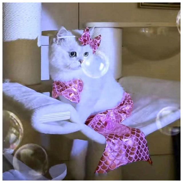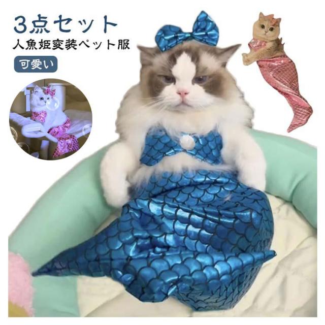 猫 マーメイド 猫服 ペットコスプレ ペット服 人魚 コスプレ ペット衣装 ペットコスチューム ペット着ぐるみ ペットウエア キャットウェア ドッグウエア コスプレ 衣装 猫コスプレ 人魚姫変装ペット服 可愛い きらきら ねこ 子猫 犬用 犬服 ハロウィーン ペット用品 3点セット