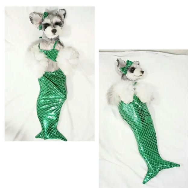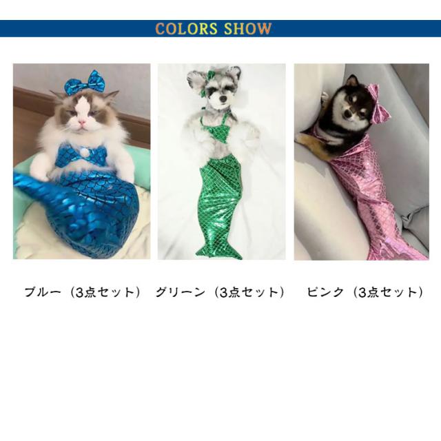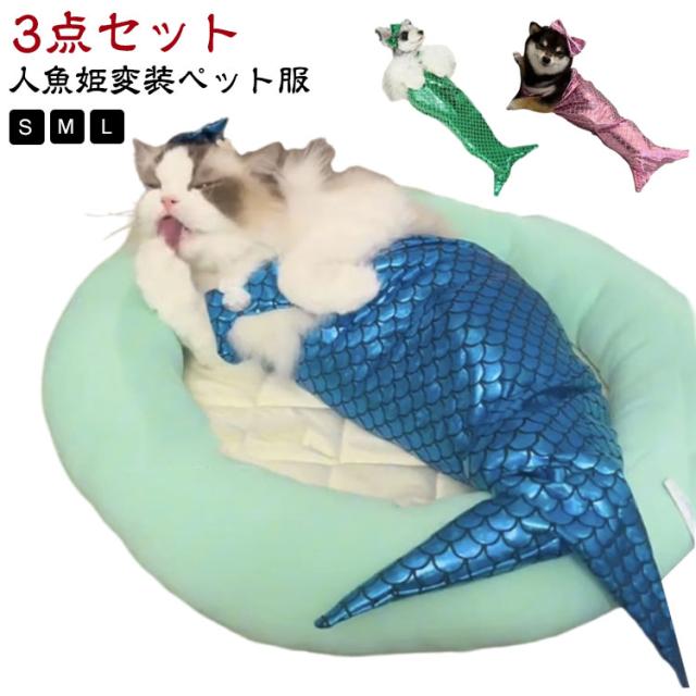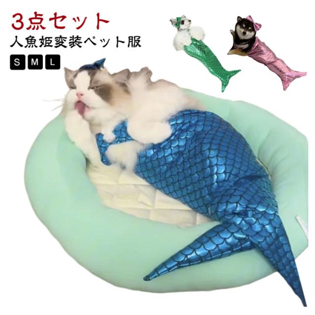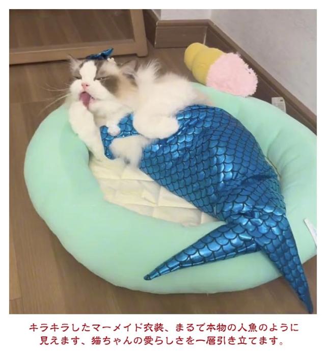 猫 マーメイド 猫服 ペットコスプレ ペット服 人魚 コスプレ ペット衣装 ペットコスチューム ペット着ぐるみ ペットウエア キャットウェア ドッグウエア コスプレ 衣装 猫コスプレ 人魚姫変装ペット服 可愛い きらきら ねこ 子猫 犬用 犬服 ハロウィーン ペット用品 3点セット