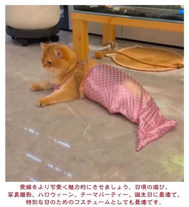 | キラキラしたマーメイド衣装、まるで本物の人魚のように見えます、猫ちゃんの愛らしさを一層引き立てます。 柔らかいポリエステル生地で作られた猫用マーメイドコスチュームは快適な着用感を提供し、ご愛猫と水中での遊びや写真撮影を快適に楽しもう。 面白いマーメイドデザインは普通の猫を魅力的な人魚に変身させ毎日の散歩を楽しいディスプレイに変えます。 愛猫をより可愛く魅力的にさせましょう。日頃の遊び、写真撮影、ハロウィーン、テーマパーティー、誕生日に最適で、特別な日のためのコスチュームとしても最適です。 | |
